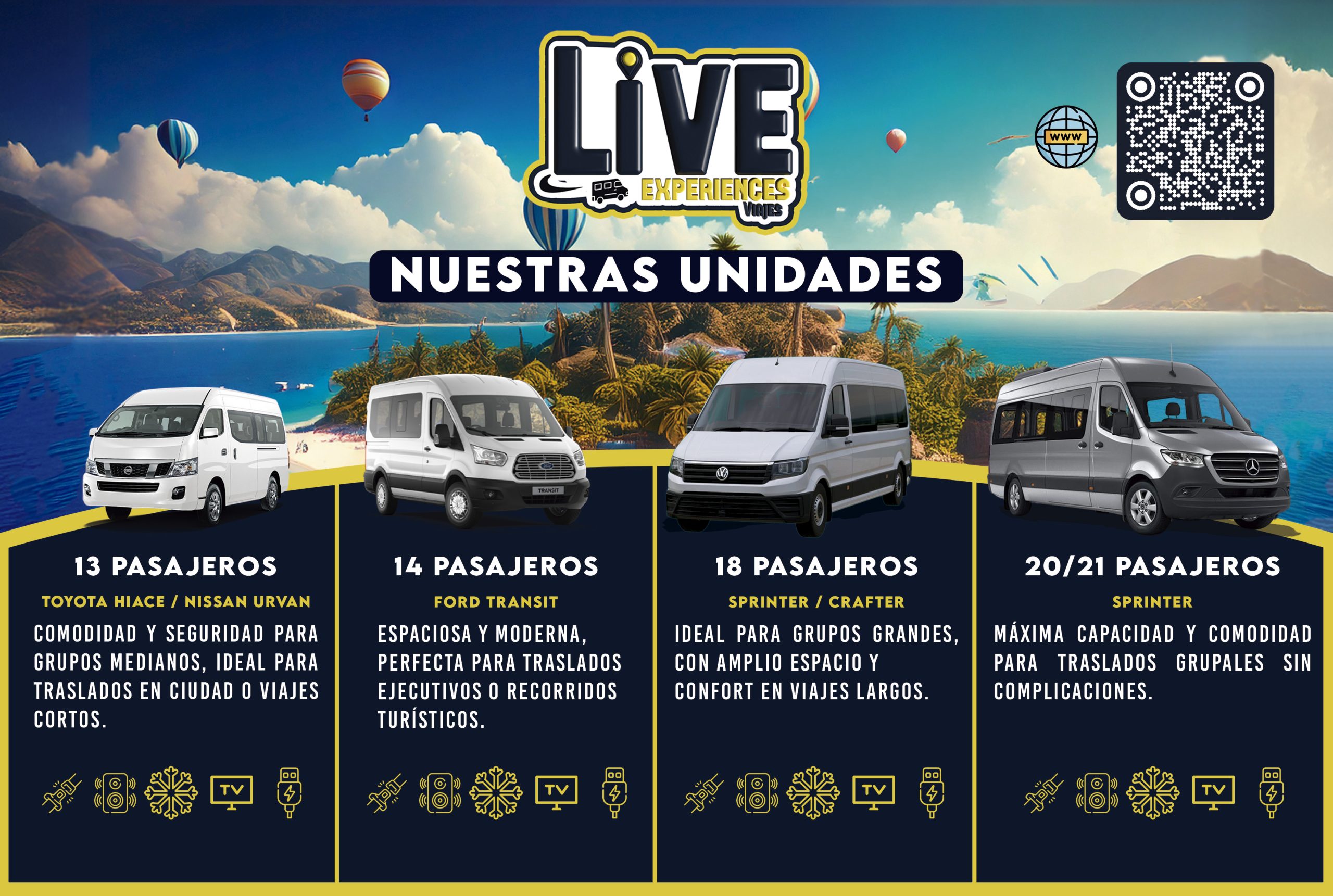 En Live Experiences, tu seguridad y descanso son nuestra prioridad. Por eso, todas nuestras unidades se rentan con operador profesional incluido.